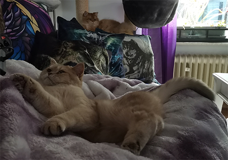 die beiden sind inzwischen schon länger hier und haben sich eigentlich vom ersten Tag an eingelebt, als wäre das schon immer ihr zu Hause gewesen. Keinerlei Probleme mit irgendetwas, keinerlei Scheu mir gegenüber.